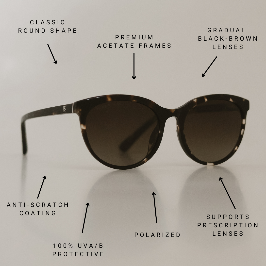 • Her gradual black-brown lenses are polarized, provide 100% UVA/UVB protection, feature an anti-scratch coating, and are made from CR39 for exceptional clarity.