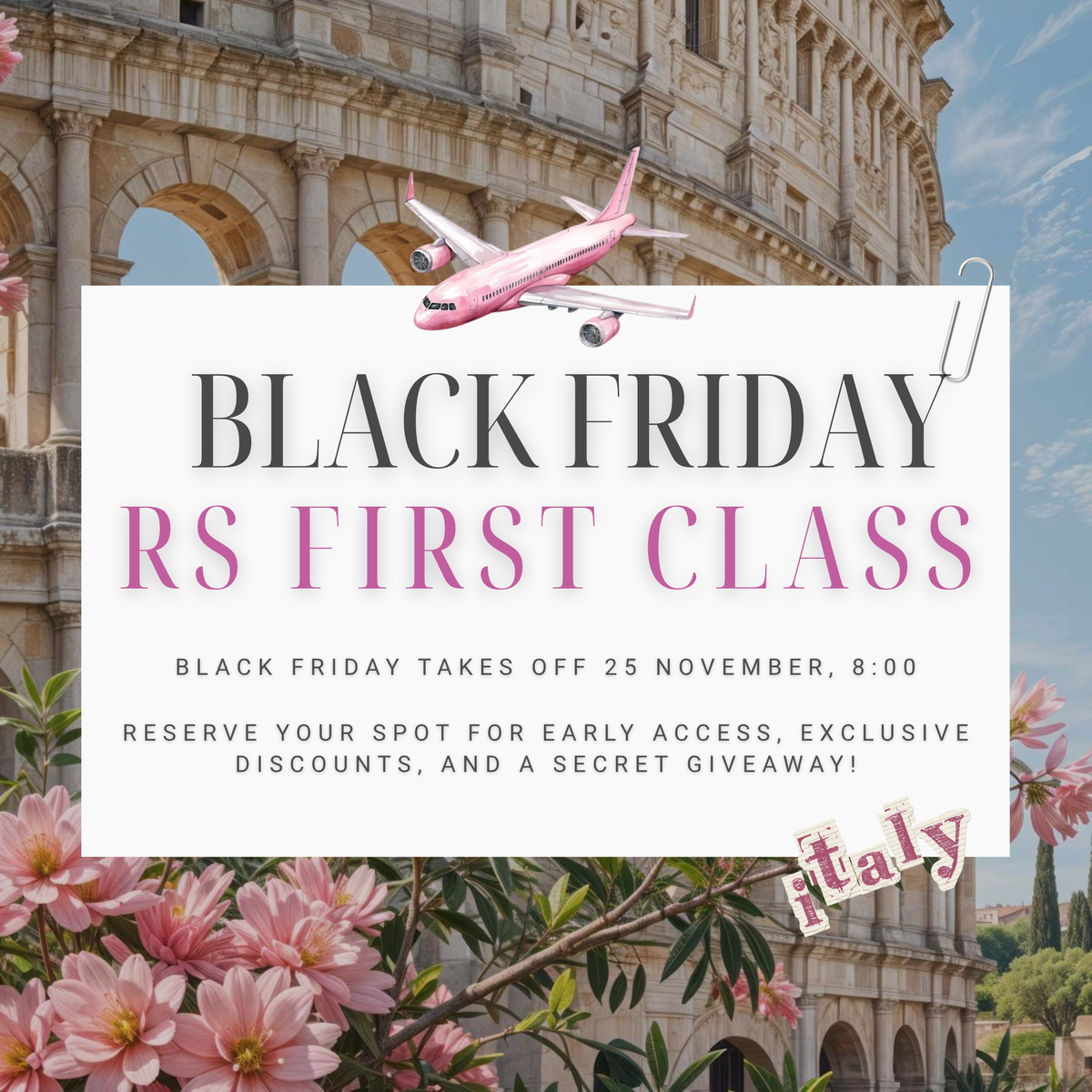 RS First Class is your exclusive boarding pass to the ultimate Black Friday experience 🍋 designed to make your shopping feel every bit as sweet as La Dolce Vita.